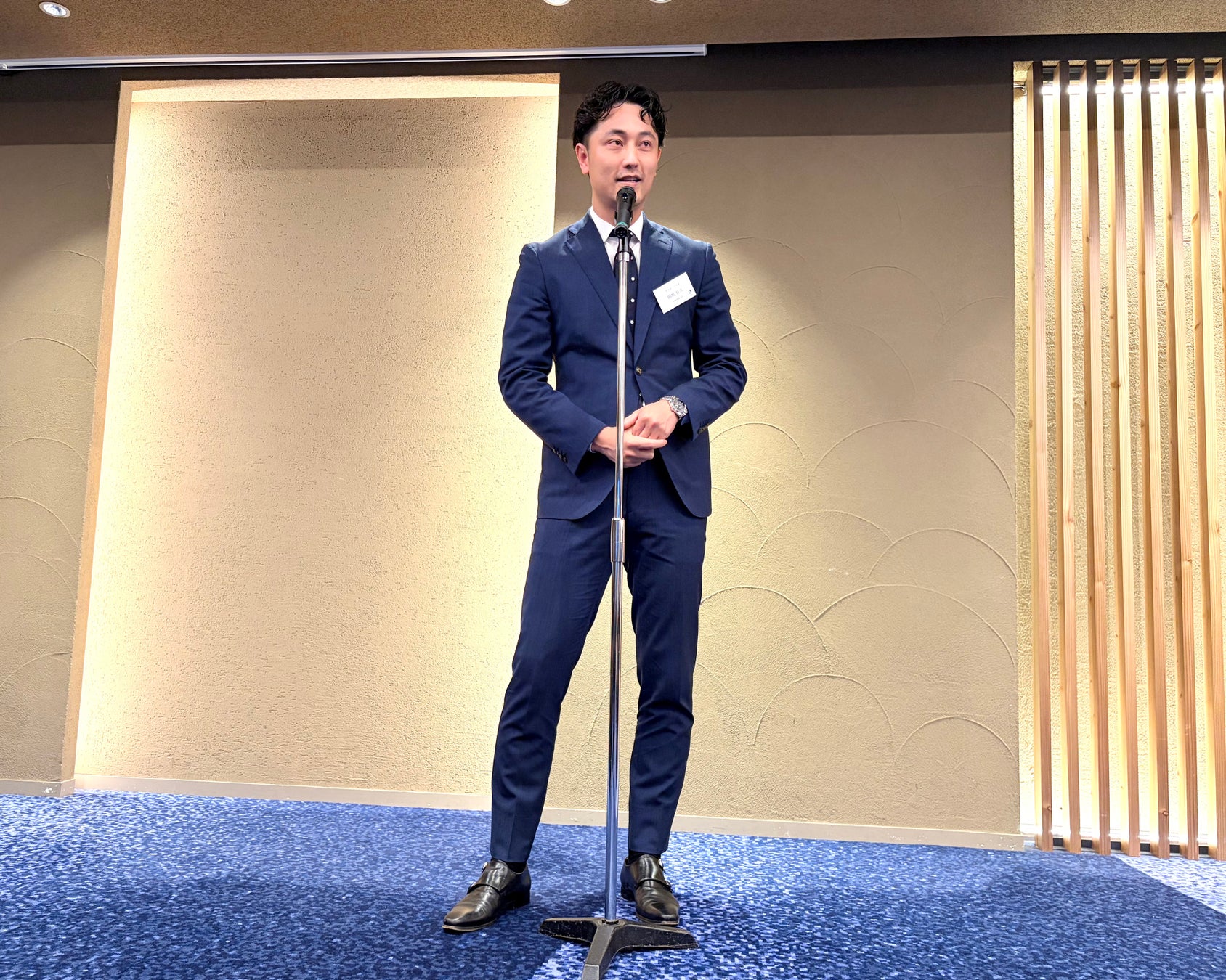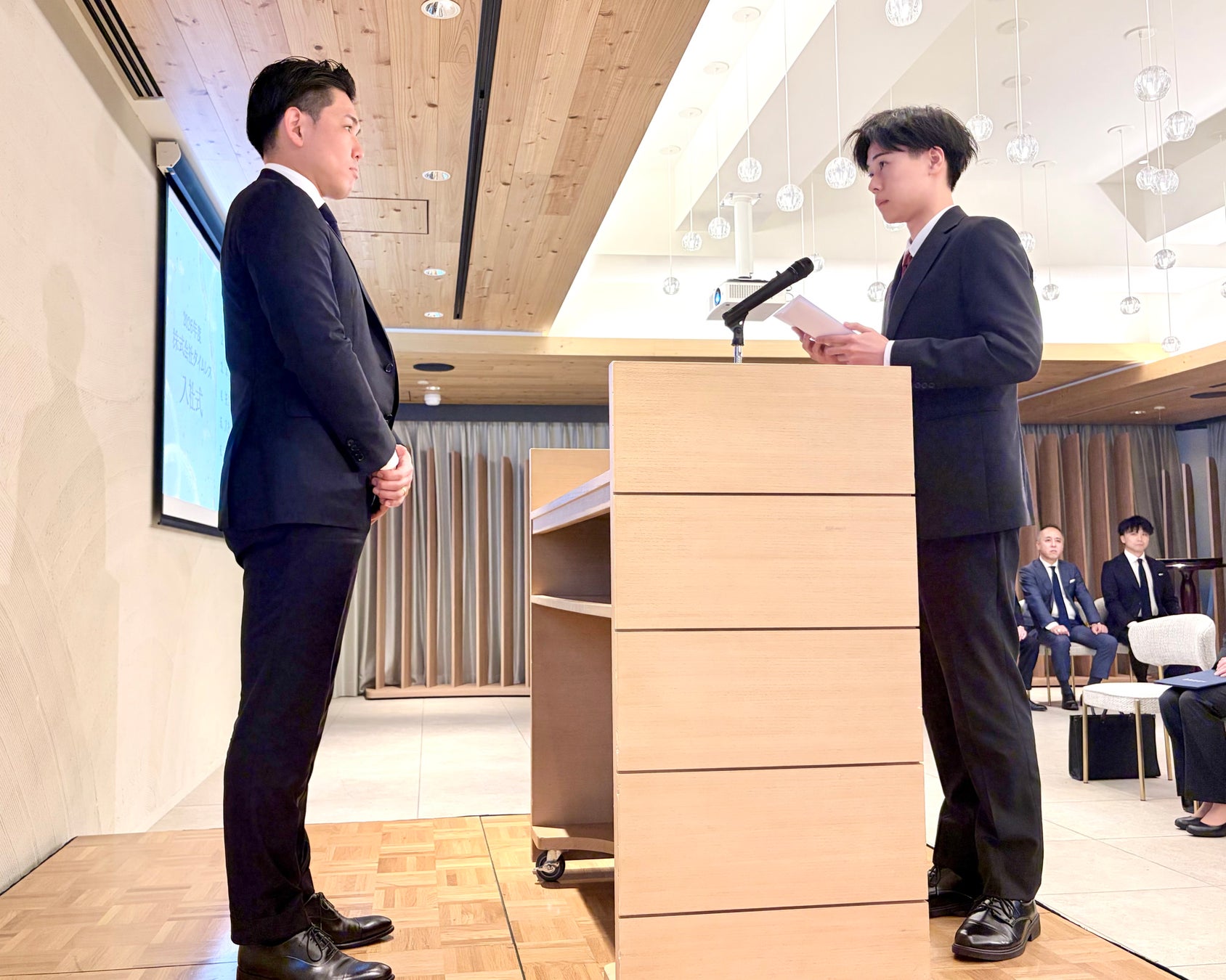まずは入社式にて、代表取締役社長 馬場浩太から挨拶があり、「株式会社タイムレスで、情熱と感謝、そして『愛』を胸に、日々の小さな完遂を積み重ね、組織として共に未来を切り拓いていきましょう」といったメッセージがありました。部長陣一人一人の紹介と挨拶の後、祝電披露、入社証明書授与と新入社員による答辞を実施いたしました。その後は、食事と会話を楽しみながらの懇親会が実施されました。最後に、店舗営業部 部長 岡根壮太より新入社員に向け、「変化を恐れず自らの『強み』を信じて磨き抜いてほしい。皆さんのこれからの活躍を全力でサポートしていきます。」という、まさに「想いに寄り添うパートナー」を表現する温かいメッセージが伝えられました。