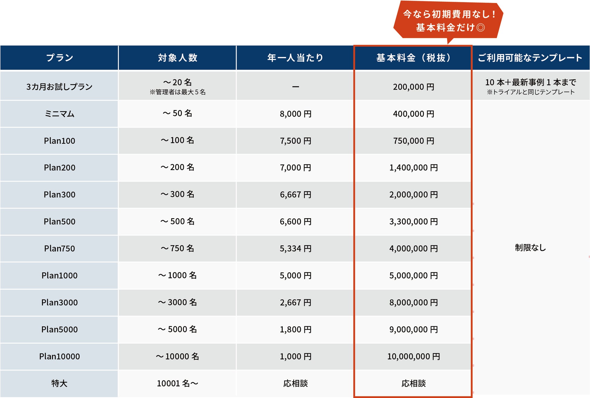 新たに「Plan500」から「Plan10000」まで、ユーザー規模に応じたプランを標準化しました。これにより、企業規模に合わせて無駄のない料金設計が可能となり、全社展開もしやすい価格体系となりました。