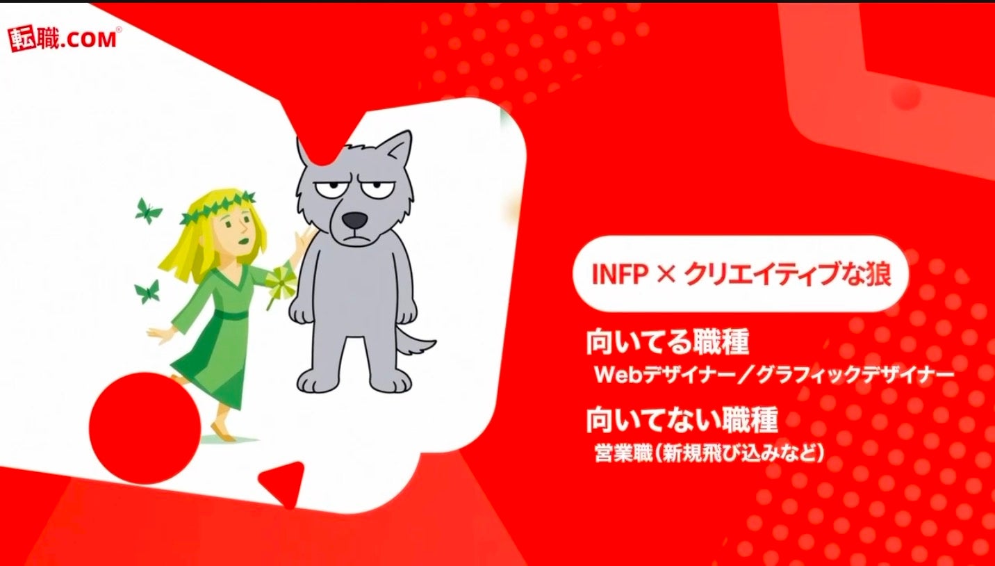 提案内容:診断結果に基づき、向いてる職種、向いてない職種が診断結果として表示。自己理解のポイント/働き方選択のヒント/SNSでの発信テンプレートなどを表示