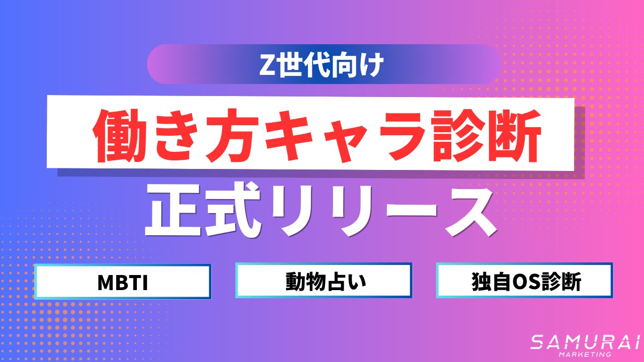 株式会社SAMURAIマーケティングは、Z世代のキャリア選択を支援する新ツールとして、「働き方診断」サービスの正式リリースを発表しました。