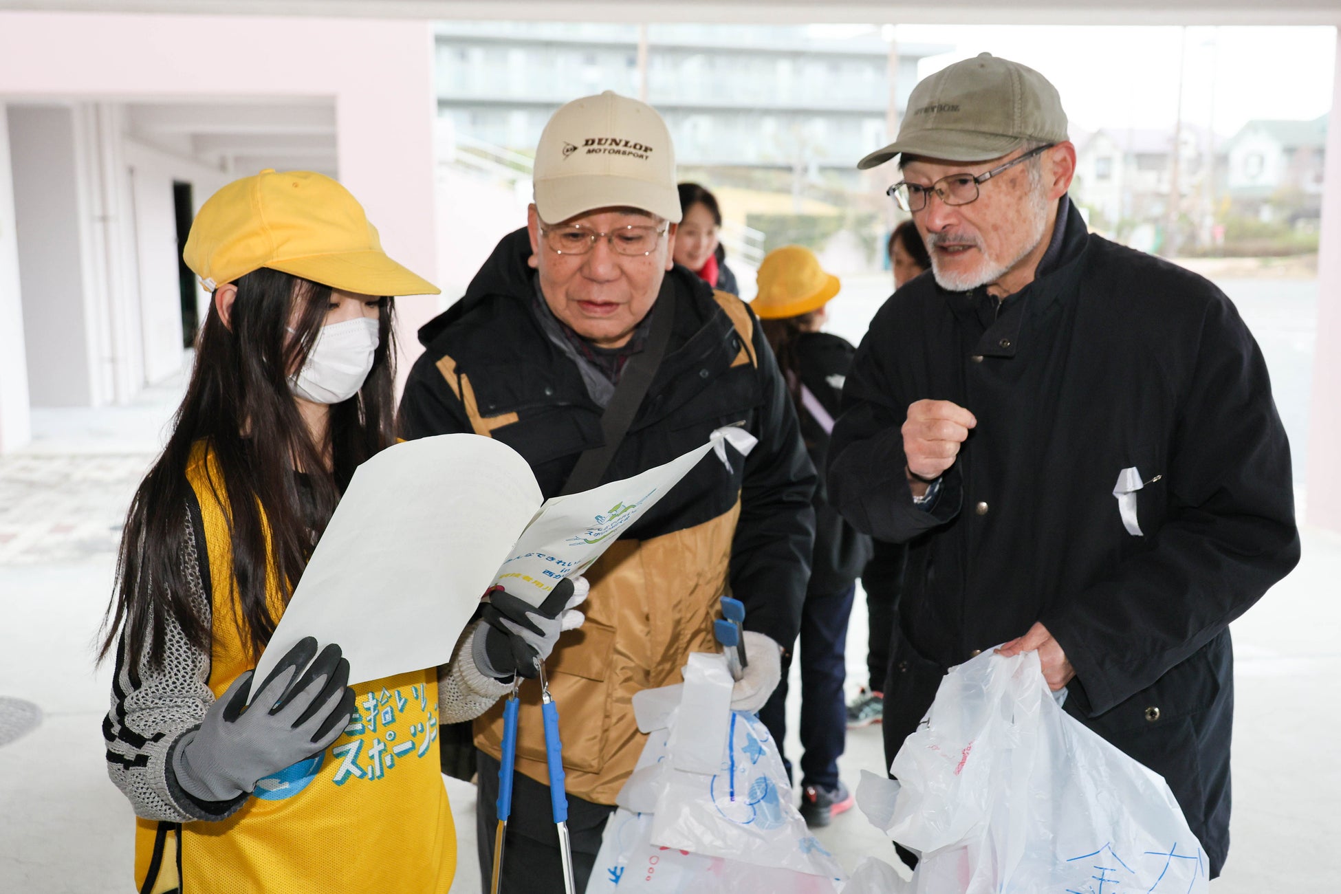 大会当日は、地域の方と帯同する審判役の児童が1チームに入り、2〜6名で構成されたチームに分かれて競技が行われました。スポGOMIでは競技前に「作戦会議」の時間があり、どのルートを回るか、どんなごみを優先して拾うかなどを相談します。この場面でも児童と地域の大人が自然に意見を交わす姿が見受けられました。