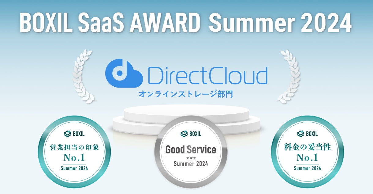 提供する「DirectCloud」は、スマートキャンプ株式会社(以下「スマートキャンプ」)が主催する「BOXIL SaaS AWARD Summer 2024」のオンラインストレージ部門で「Good Service」および2つのNo.1を受賞いたしました。