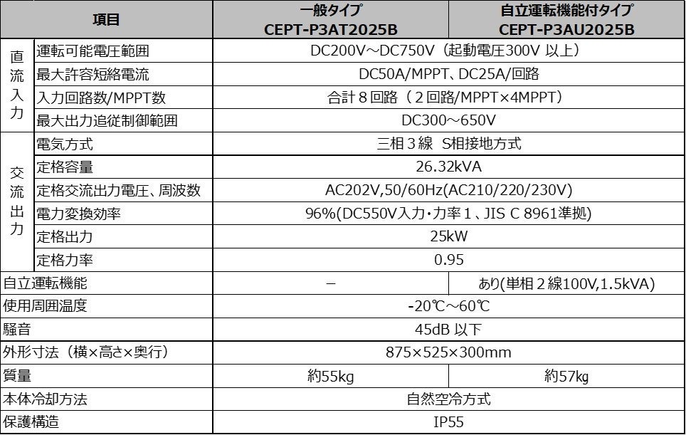 左:太陽光発電システム用パワーコンディショナ三相用、