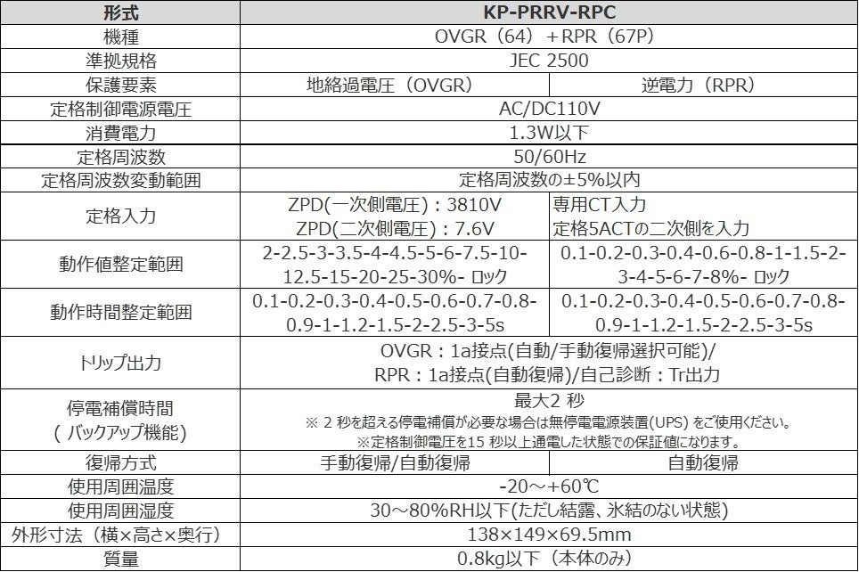 ・バックアップ電源:電力系統地絡で停電が発生しても地絡検出するためOVGRの電源補償する直流電源