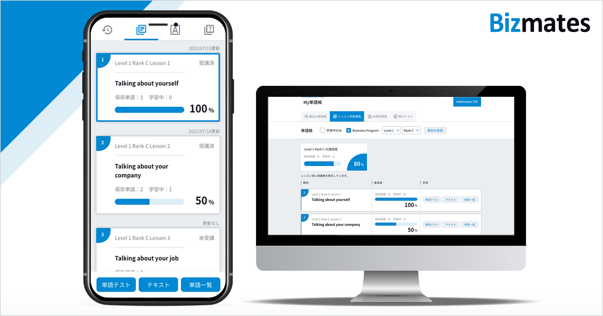 ビジネス特化型オンライン英会話事業「Bizmates」(https://www.bizmates.jp/)を展開するビズメイツ株式会社(東京都千代田区、代表取締役社長:鈴木 伸明 、以下「当社」)は、2022年7月27日(水)より、受講者ポータルサイト「MyBizmates」にて、オンライン英会話の学習効果を飛躍的に向上させる「My単語帳」機能の提供を開始しました。