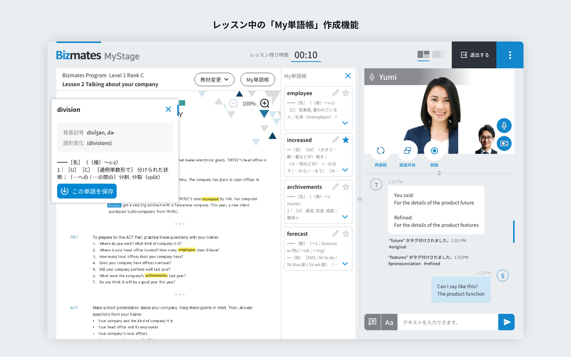 ビジネス特化型オンライン英会話Bizmates 学習効果を向上させる新機能「My単語帳」を提供開始