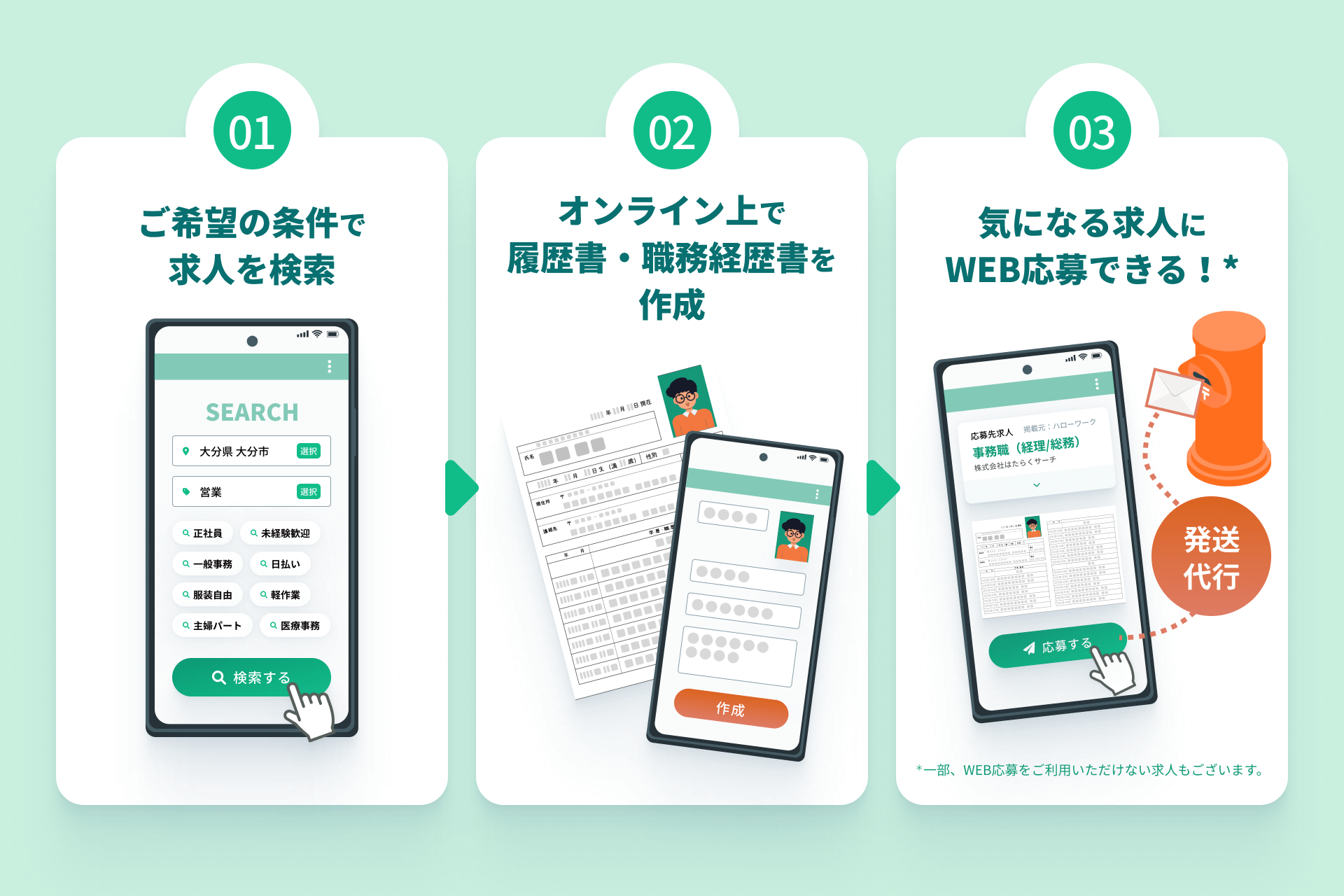 *⼀部⾮対応(オンライン応募を受け付けていない)求⼈も含まれます。