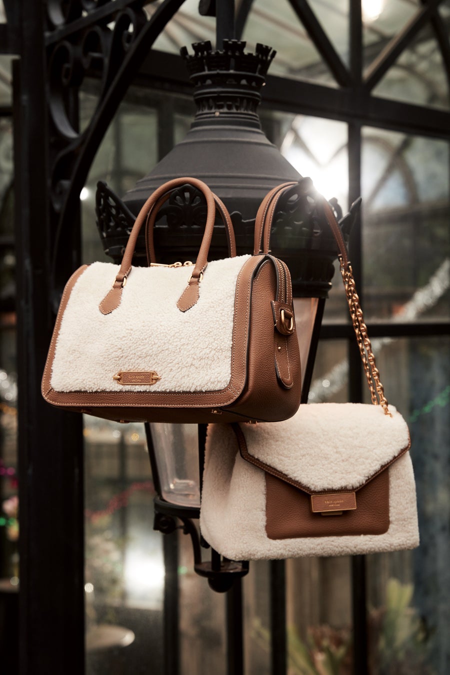ブランドのホームタウン、ニューヨーク市のマンハッタン南東の地区名の名を冠した新コアグループで、大胆でありながらもフェミニンで、洗練された印象のコレクション。サイズは、ミディアムバケット、ミディアムコンバーチブルショルダー、ミディアムサッチェルの3 サイズ、素材は、ペブルレザー、シェニール織り、シアリングの3 種類がラインナップします。左から:グラマシー シアリング ミディアム サッチェル ¥78,100 (H19.8 x W30 x D12cm)、グラマシー シアリング ミディアム コンバーチブル ショルダーバッグ ¥72,600 (H17 x W27.5 x D9cm)