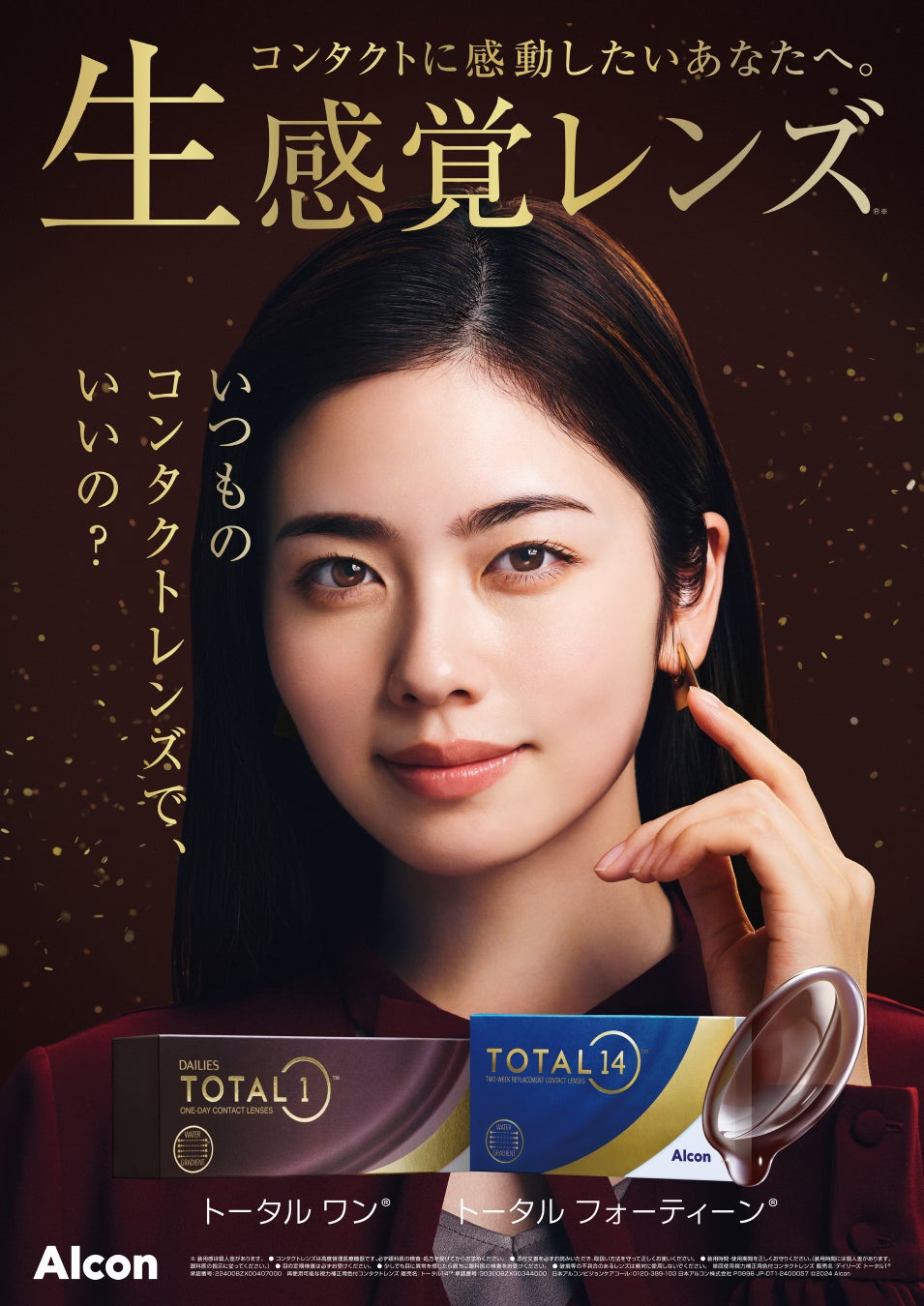 小芝風花さんは、これまでも「プレシジョン®」ブランドのブランドアンバサダーとしてご活躍いただいておりましたが、今後は日本アルコンのコンタクトレンズ全ブランド、特に「トータル®」「プレシジョン®」ブランドを含む、レンズ表面がほぼ水で、ジェルのように柔らかな「生ジェル」ラインアップのアンバサダーとして、製品のうるおいや快適なつけ心地を表現していただきます。