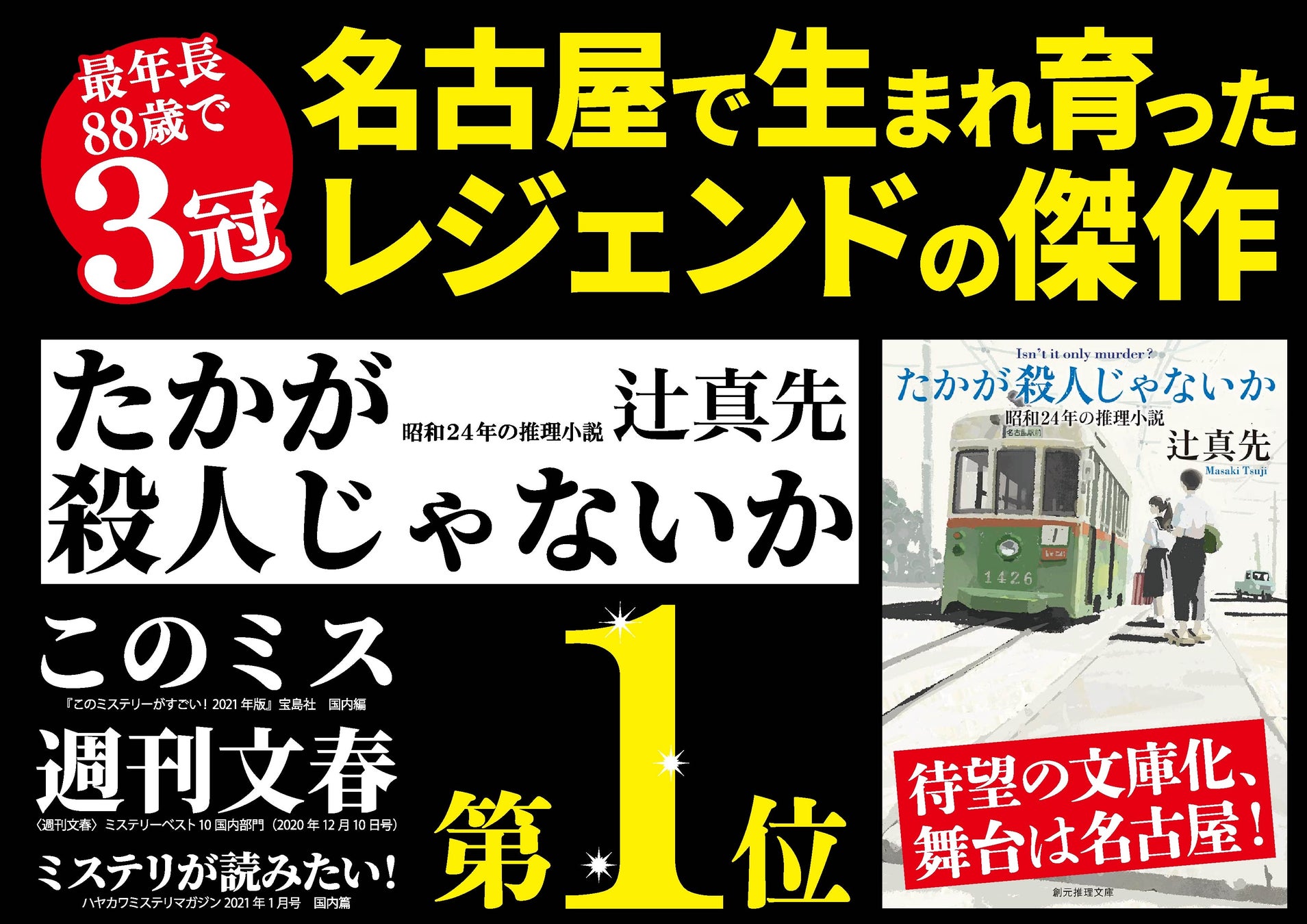 史上最高齢でミステリランキング3冠を獲得した大傑作!レジェンド・辻真先が贈る本格ミステリ『たかが殺人じゃないか』が待望の文庫化!
