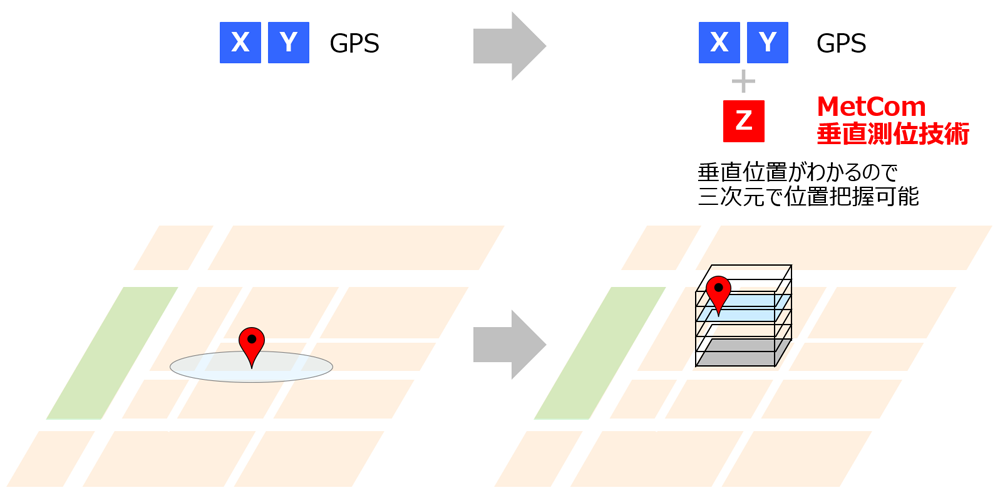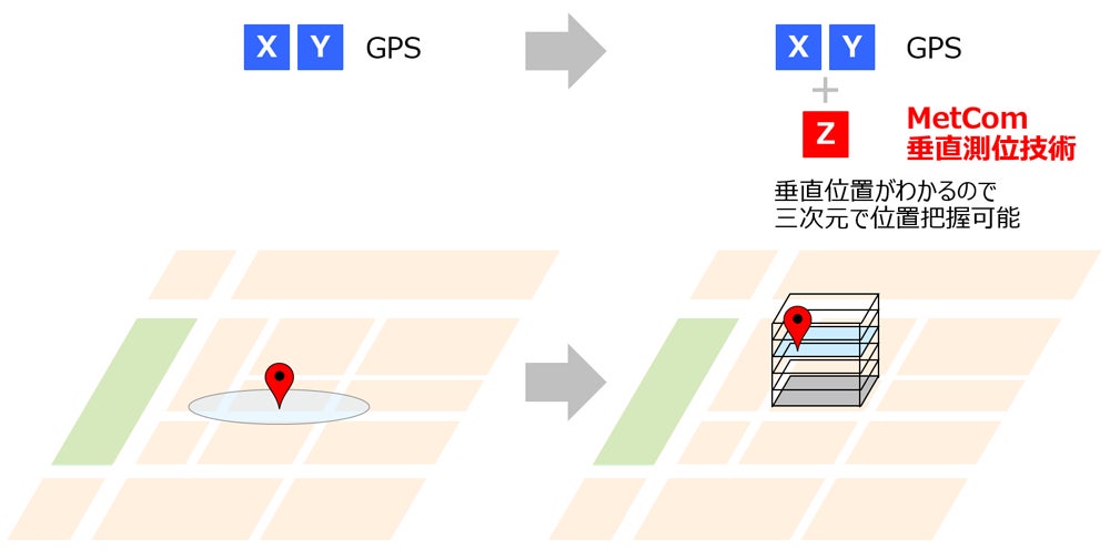 ・Pinnacleの仕組み、提供エリア等について、より詳細な情報は、MetComの「垂直測位サービス」の説明ページ (https://metcom.jp/service/pinnacle/) をご参照ください。