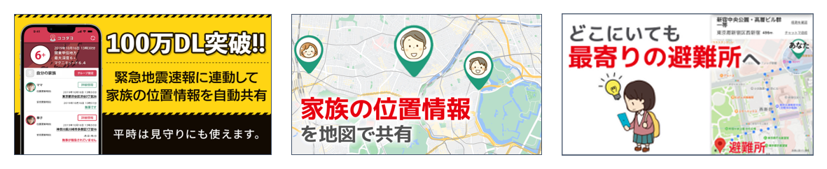 ・緊急地震速報に連動して、家族の位置をどこよりも早く通知・共有。安否確認をサポートします