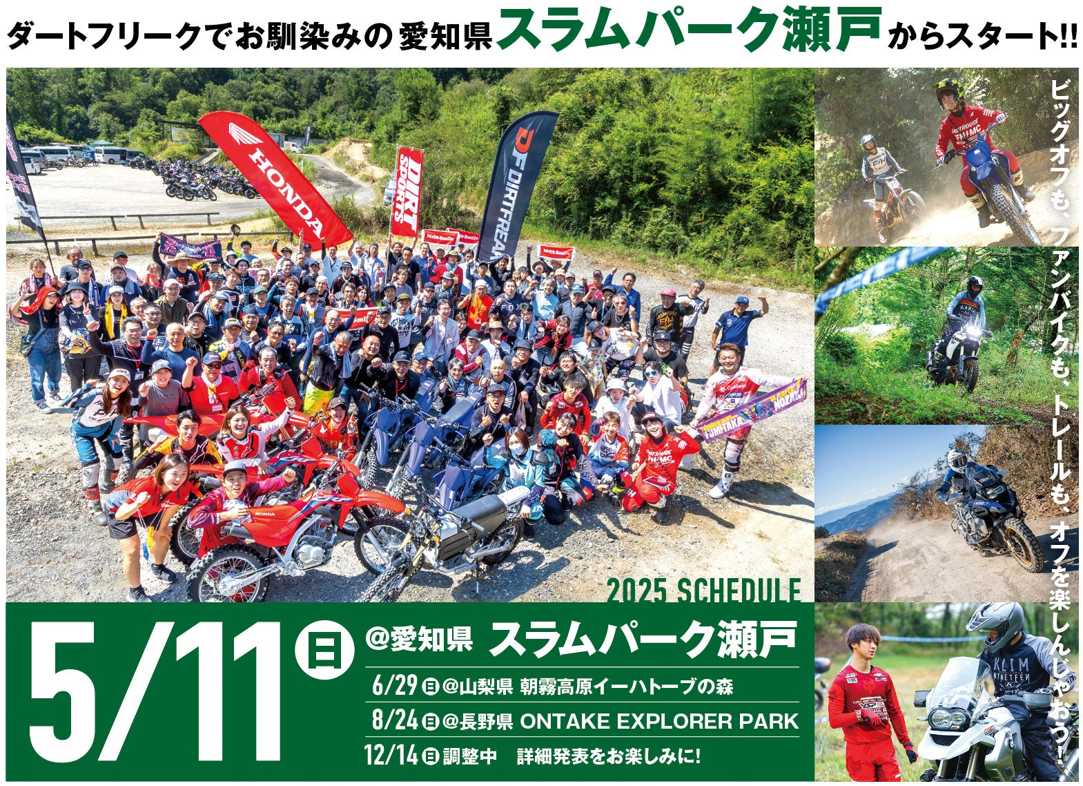 初心者も経験者も楽しめるオフロード走行会「オフロードライディングパーティ」2025年5月11日(日)スラムパーク瀬戸にて開催!