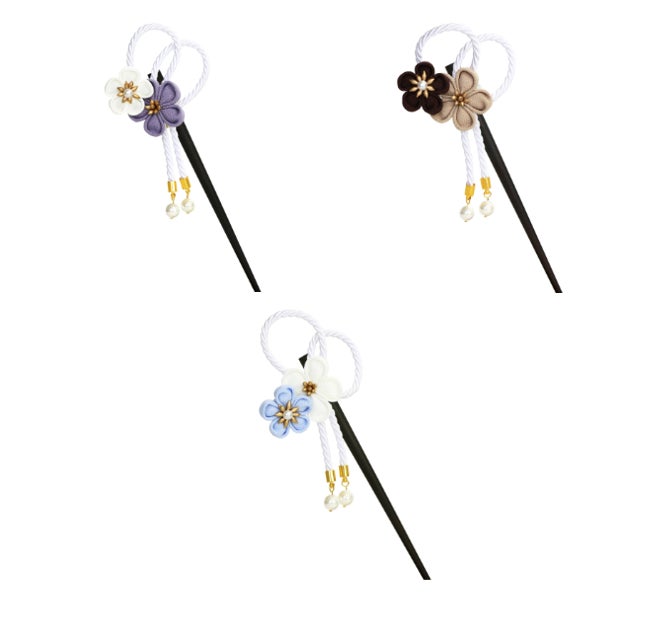 2色の梅の花と縄を合わせたデザインで、伝統を踏襲しつつも現代で使いやすいwargoならではの伝統つまみ簪です。