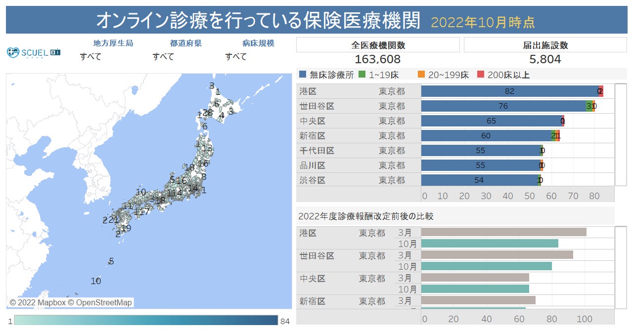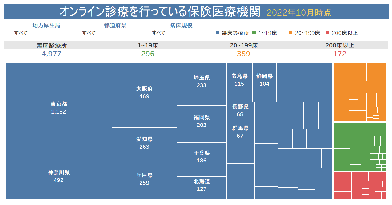 2022年度診療報酬改定にて、従来のオンライン診療料にかわって新設された「情報通信機器を用いた診療に係る届出」をもとに、オンライン診療体制の最新状況を調査しました(2022年10月時点)(中村)