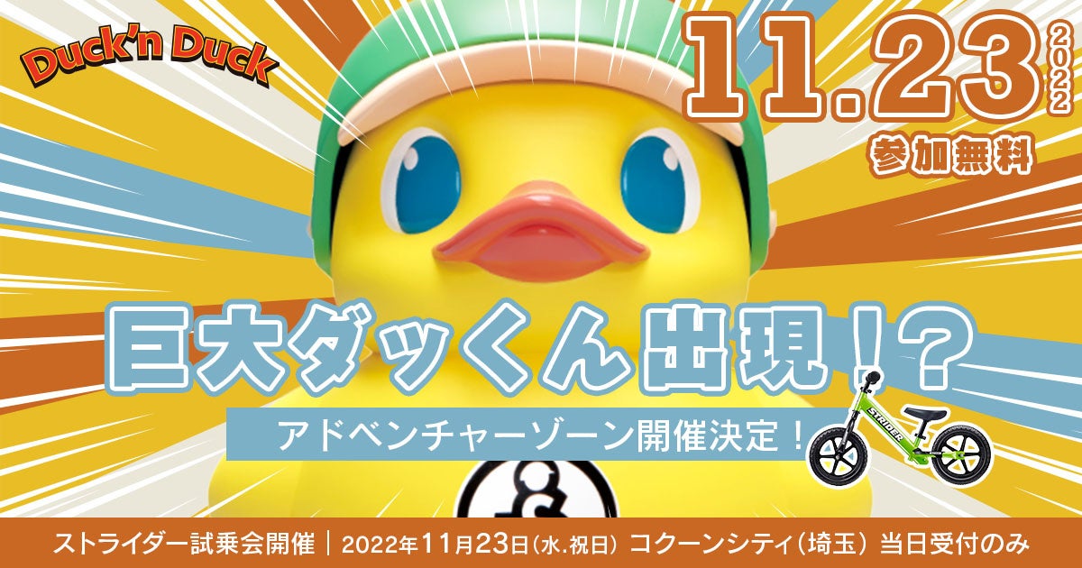- 【ダッくんダック・関連情報②】ミンナトハシリタイ!巨大ダッくんも出現!?11月23日(水・祝日)試乗会開催決定!