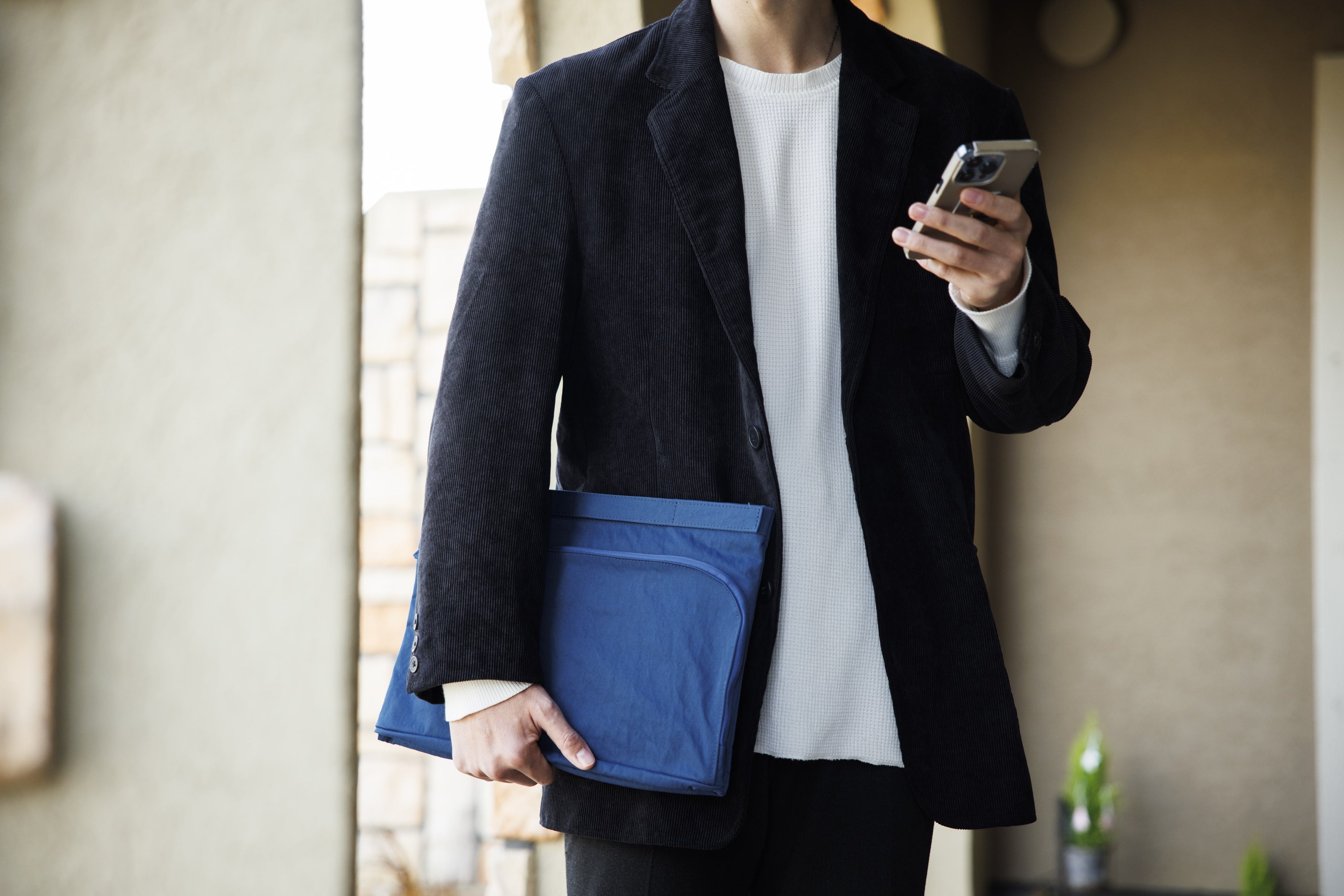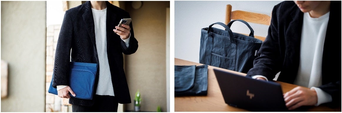 また、新たに加わったクラッチバッグは、バッグインバッグにも使え、男性やビジネスシーンにもピッタリなデザインに仕上がっています。書類やノートパソコン、カードまで収納可能なこだわり設計で、打合せや商談などのビジネスシーンにおいて、スマートにご使用頂けます。