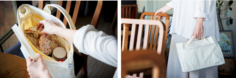 ハンドバッグはランチボックスや水筒、細々したコスメなどもスッキリ収納可能で、かわいいコロンとしたデザインはちょっとした外出にオススメです。どちらもバッグインバッグとしても使用可能で、バッグの中身を綺麗に保てます。