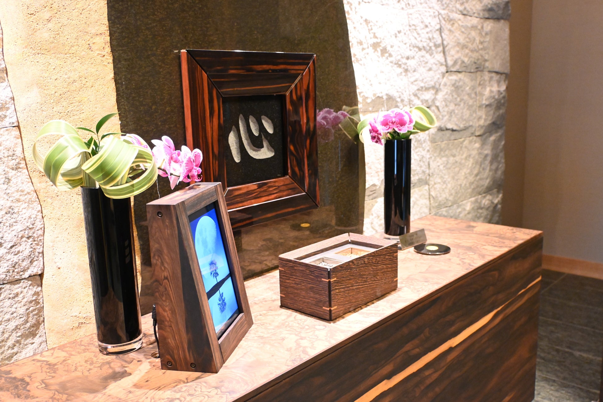 はじめに本堂で心を落ち着けた後は、各階でそれぞれ特徴の異なる参拝室を見学して回ります。現代的で荘厳なしつらえはもちろん、登録した写真が映し出されるデジタル遺影や、生花やお香も常設されていて何も持たずに訪れられること、何より遺族の心に寄り添ったお参り空間にみなさん驚くばかり。家を建てる感覚で「自慢できるお墓」として興味を持たれた方もいたようです。小西さん自身も初めて見る設備や美しいしつらえに驚きながら、身内だけでゆっくりと故人に向き合える空間、そしてどんな天候でも快適にお参りができる利便性に感心された様子でした。