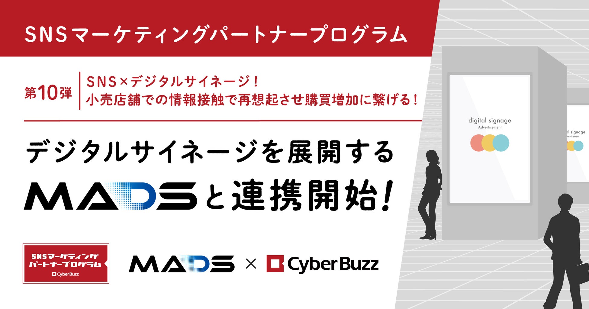 SNS×デジタルサイネージ!サイバー・バズが展開するSNSマーケティングパートナープログラムにて第10弾はデジタルサイネージを展開するMADSと連携開始!