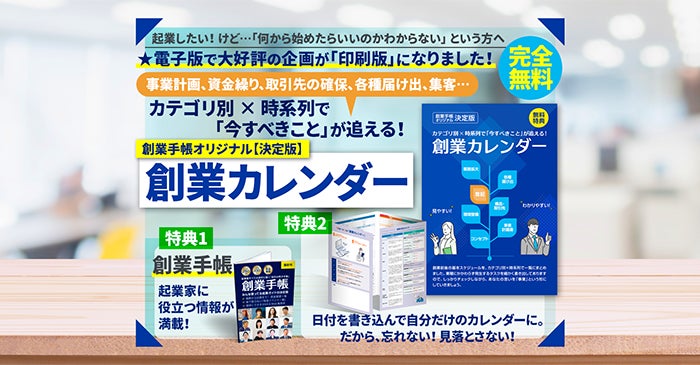 起業後の“今すべきこと”が一目でわかる『創業カレンダー』に待望の「印刷版」が登場、無料で提供開始