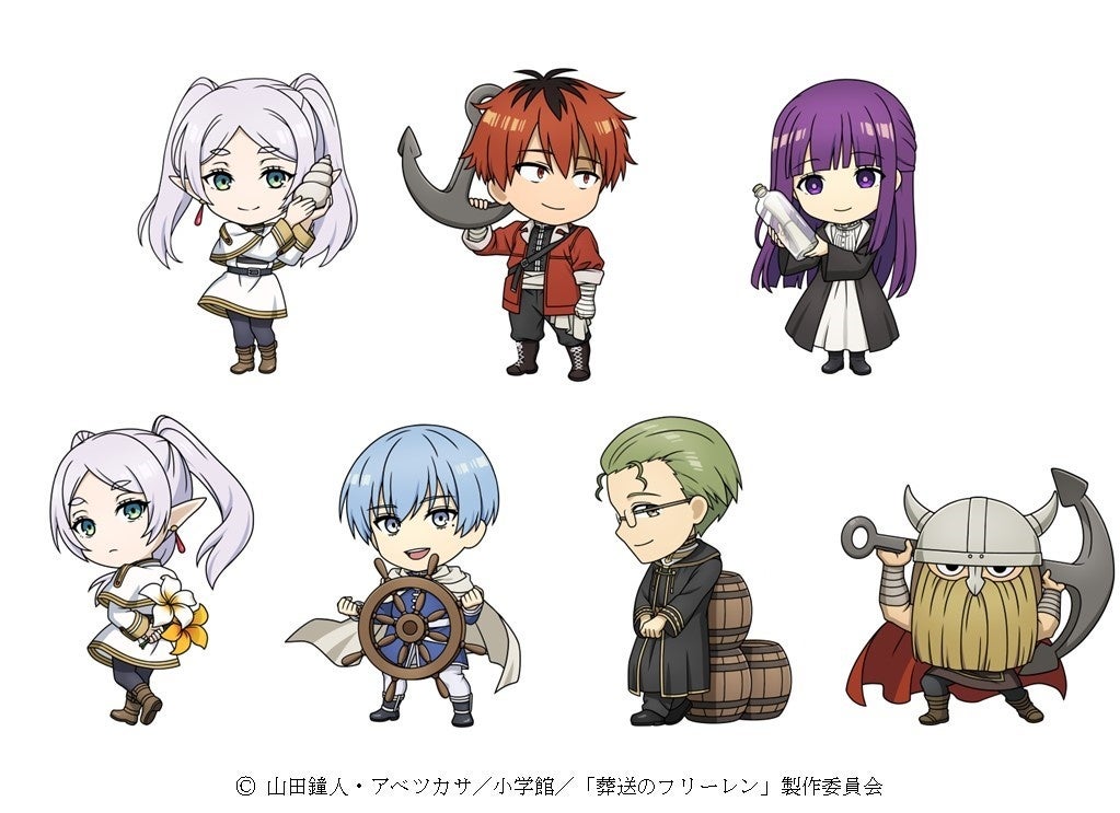 海沿いの街・ラグーナにやってきたフリーレンたちとヒンメル一行がミニキャライラストで登場。