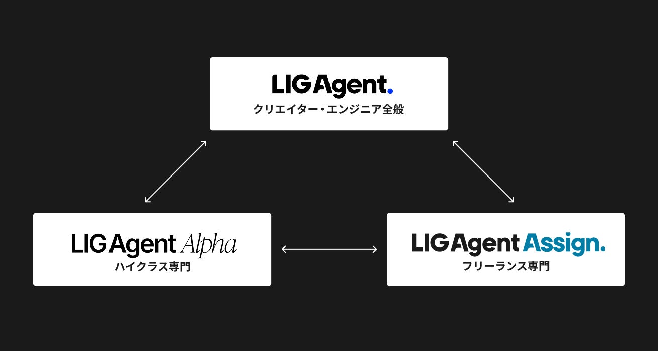LIG Agentでは、これまで正社員転職を支援する「LIG Agent」、ハイクラス人材向けの「LIG Agent α」を展開してきました。今回の「LIG Agent Assign」はその拡張であり、フリーランスという選択肢を加えることで、一人のクリエイター・エンジニアのキャリアを、働き方をまたいで一貫して支援できる体制が整いました。