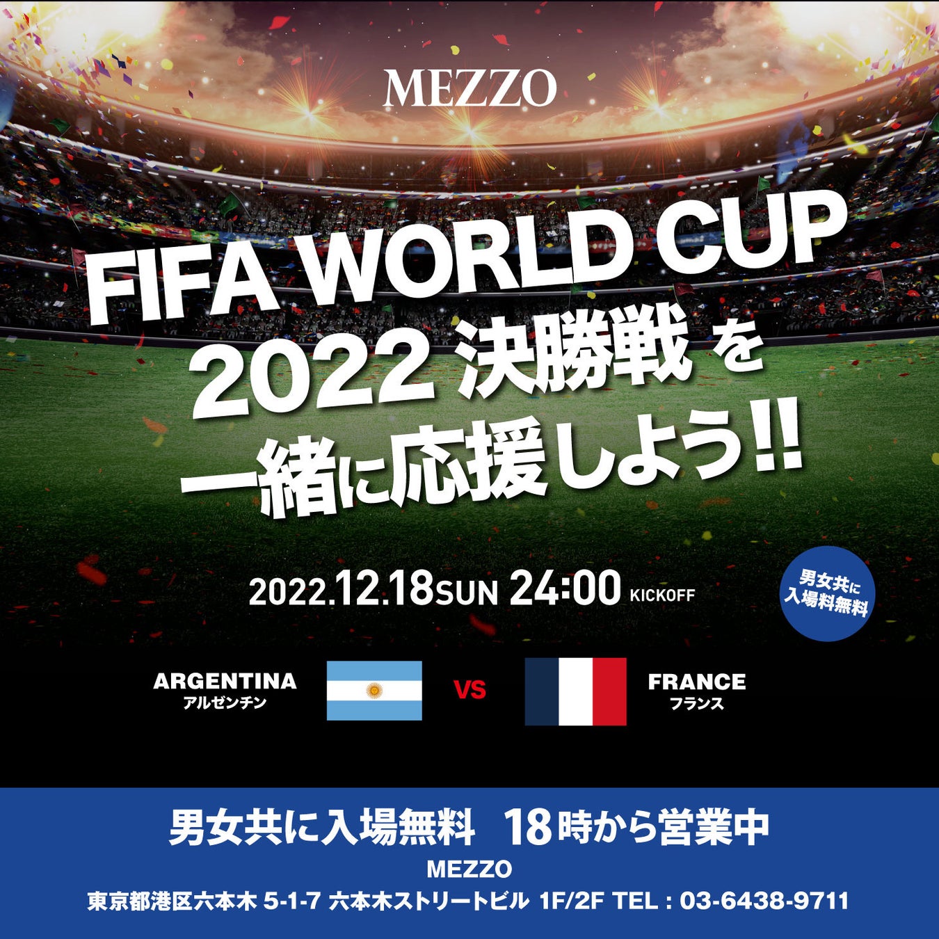 1218(日)カタールW杯決勝を六本木MEZZOで一緒に観戦しよう