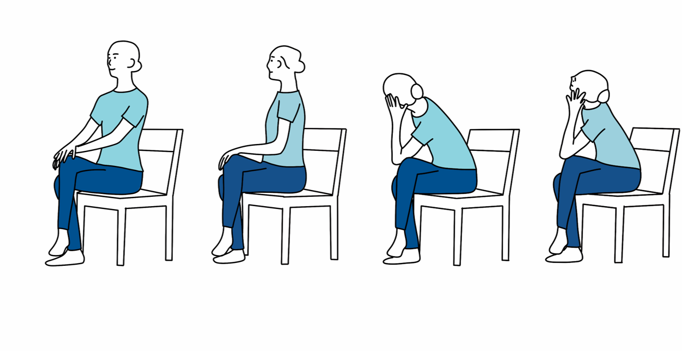上半身にある筋膜刺激エリア・頭と首の境目に頭の重みで圧をかけることで、上半身の交感神経が優位になり、目の疲れはもちろん、鼻詰まりもすっきりします。耳を包むように親指を首の後ろの生え際に、その他の指をこめかみの位置に置き、頭の重さを使って刺激するのがポイントです。