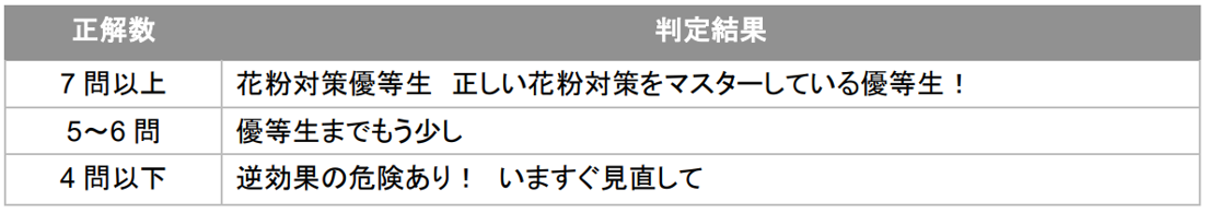 花粉対策○×クイズ 解説 7問以上正解で花粉対策優等生