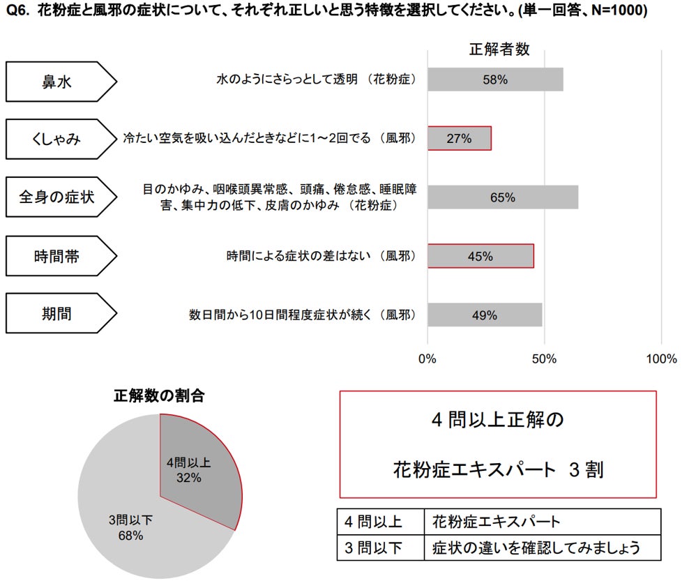花粉症診断テスト 4問以上正解のエキスパートは3割