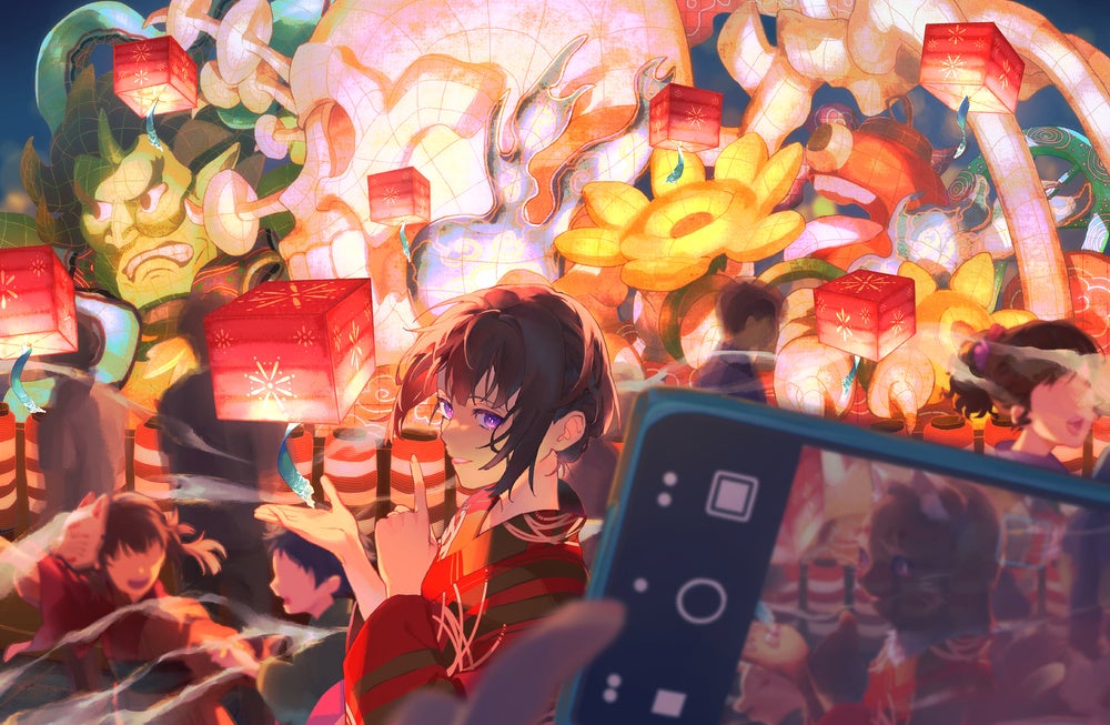 夜の夏祭りの怪しい雰囲気が出ていますね…!