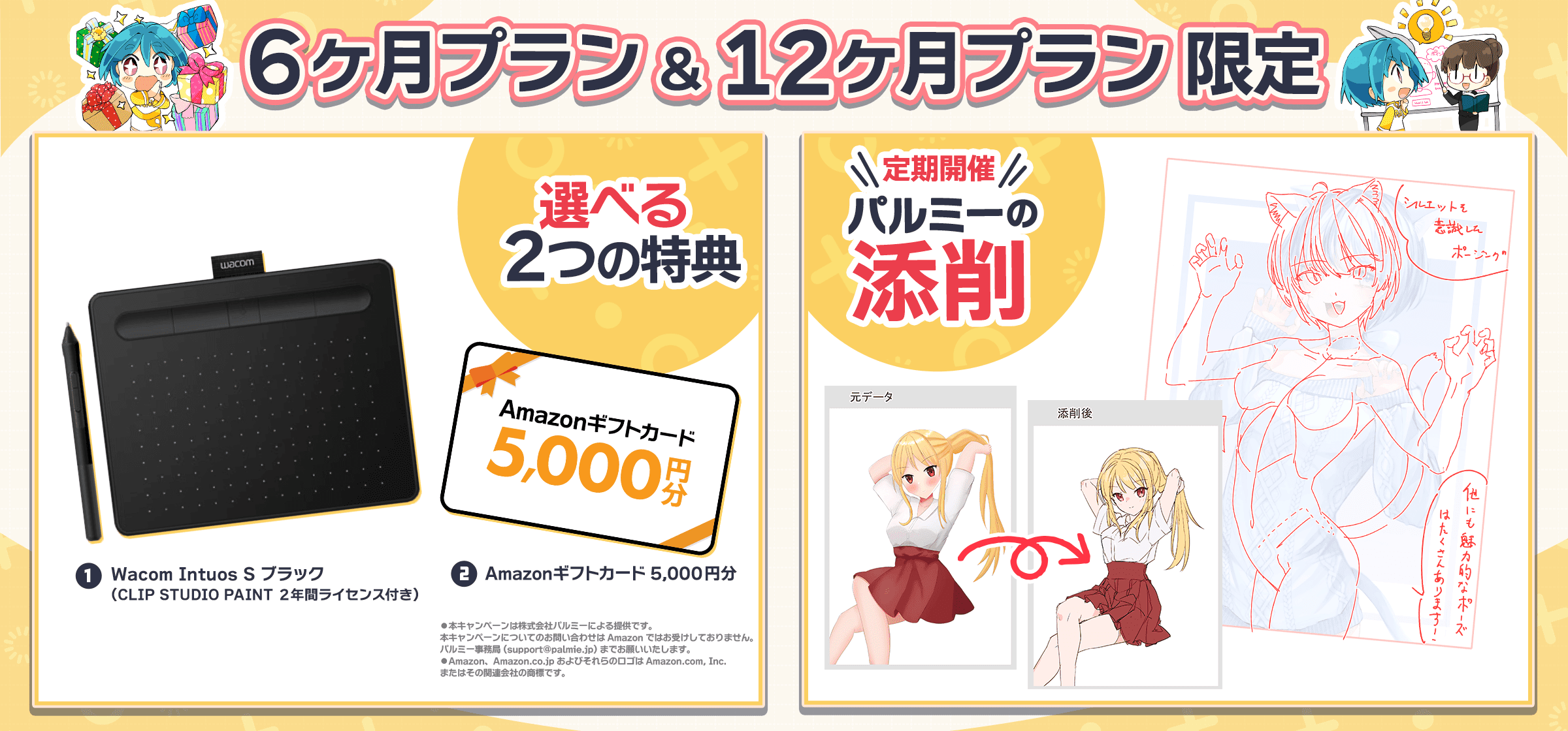 パルミーは、自宅に居ながらイラストやマンガの描き方が学べるオンライン教室です。著名クリエイターや漫画家、アニメーター、専門学校講師など、多くの「プロ」が講師を務めています。月額定額制(サブスク)で授業が受けられる「月謝制」は、累計利用者数20,000名を突破し、順調に利用者数を増やしています。