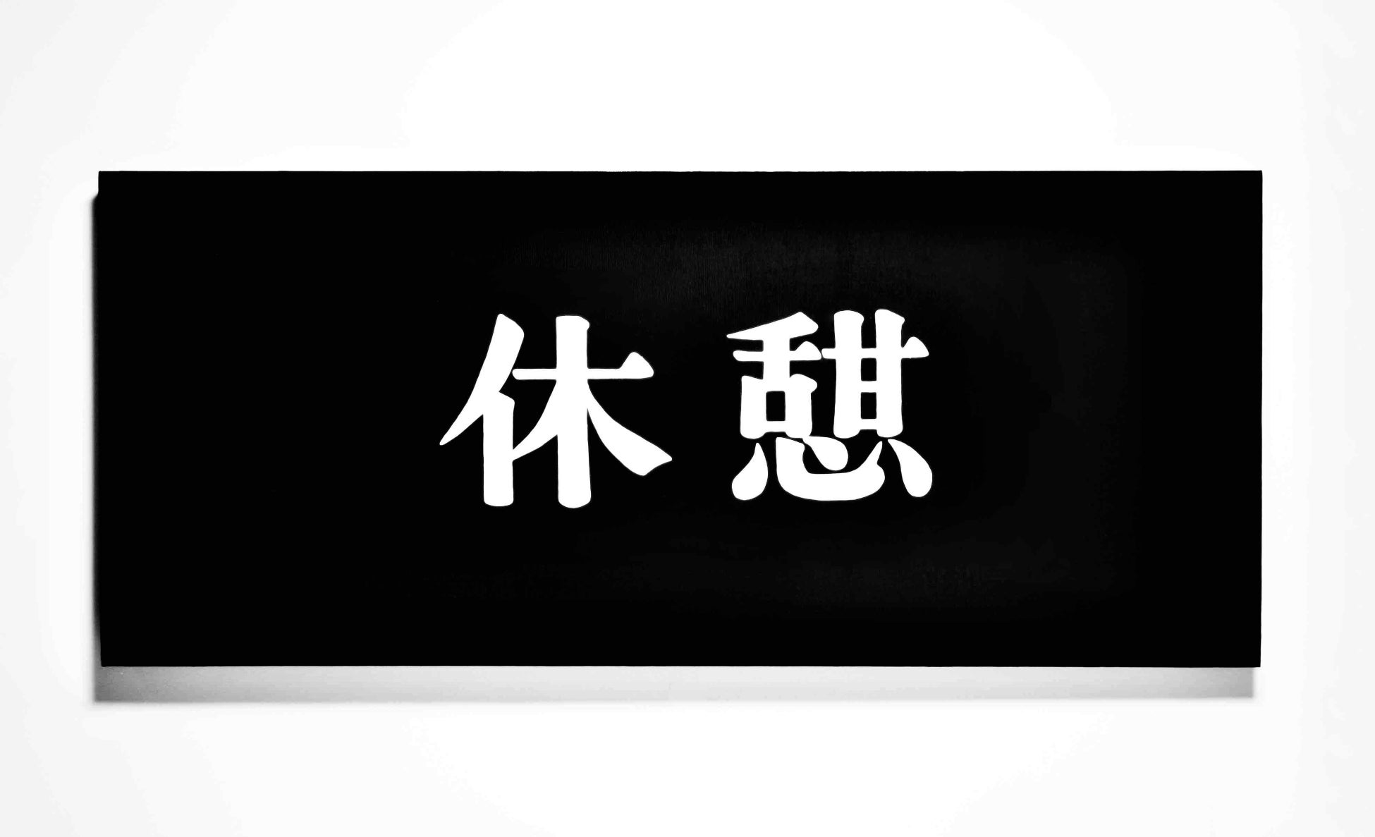 三原回の《INTERMISSION》シリーズは、かつて長編映画の休憩時間(インターミッション)に表示されていた画面を絵画にした作品である。ただし「絵画」というのは形式であって本質ではない。素材ないし技法としては、キャンバスに油彩といった「メディウム」よりも「絵画」というメディアを利用した作品と言うほうが適切かもしれない。ぶ厚い支持体や強い光沢、ローラーや筆の粗雑な跡など、物質としての存在感を生々しく誇張する方法を採っており、けっして洗練された絵ではない。もっと単純に、これは絵画なのかではなくこれは絵なのかと問うなら、おそらく答えは否である。