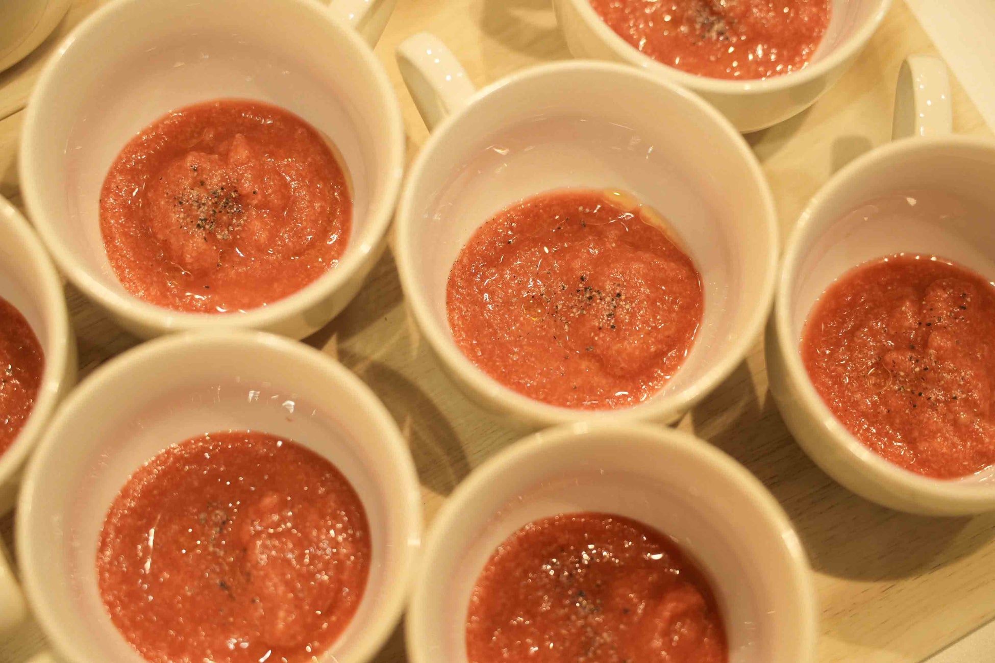 ➀ニンニクやキュウリ、タバスコをわさびで代替⁉最小限の材料で作れる「ガスパチョ」