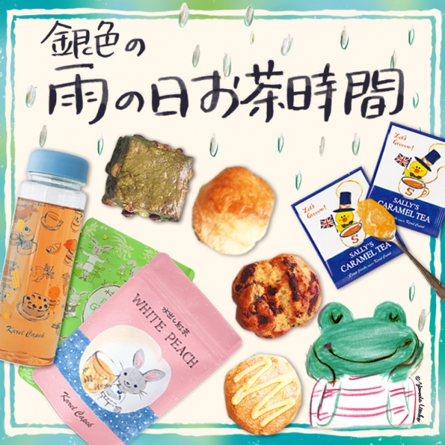 公式通販サイトおよび楽天ショップでは、期間中毎週金曜12:00より、スイーツと紅茶がたっぷり入った「お取り寄せティータイム倶楽部 銀色の雨の日お茶時間セット」(¥5,400)を数量限定で発売します。最新の水出し紅茶&ハーブティーも入って、通常の20%OFFと大変お得です!(価格はすべて税込表示)