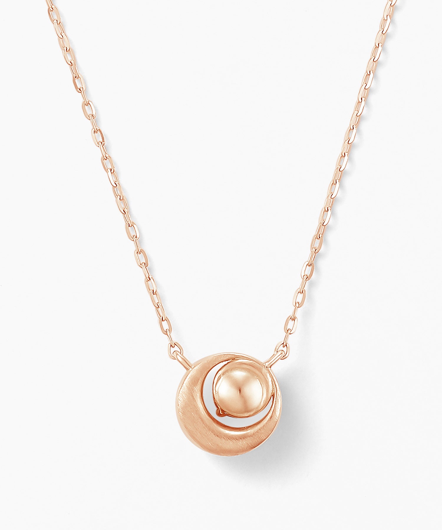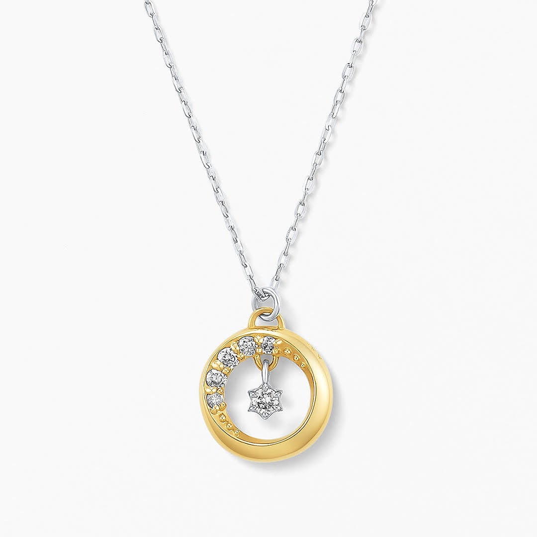 絶え間なく繰り返えす月の満ち欠けを表す大胆な月のシルエット、センターには北極星をイメージしたダイヤモンドが胸元を照らします。チェーンにはプラチナを使用し、トレンド感のあるコンビ使いが新鮮な仕上がりです。