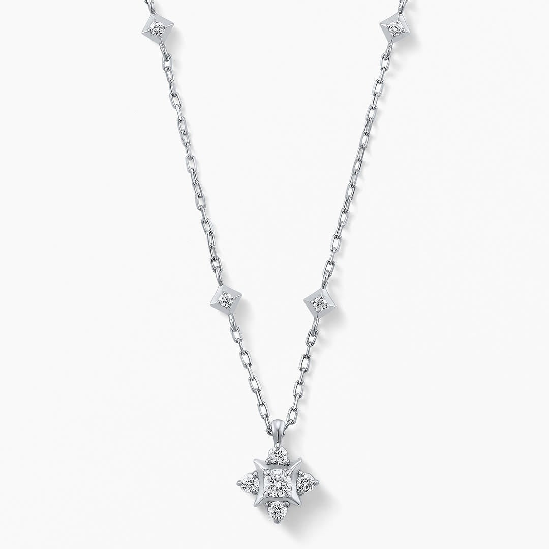 センターストーンに“Wish upon a star®”ダイヤモンドがきらめくプラチナネックレス。センターストーンを囲む地金の照返し、周りを囲むメレダイヤモンドによって無限の輝きが広がります。プラチナとダイヤモンドの輝きが優雅で上品なデザインです。※数量限定 Special BOXプレゼント(NAVY)