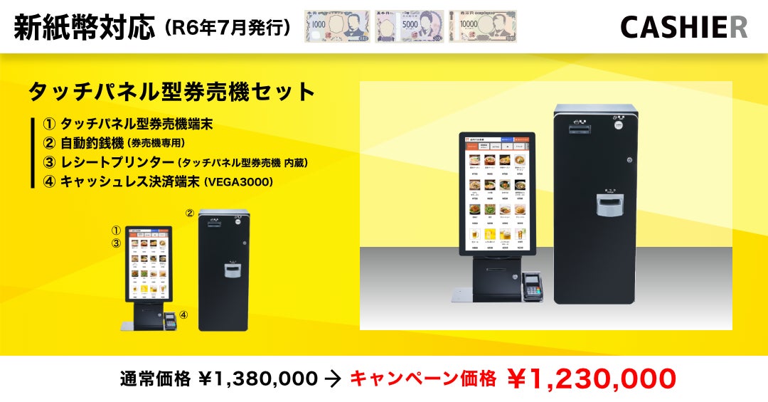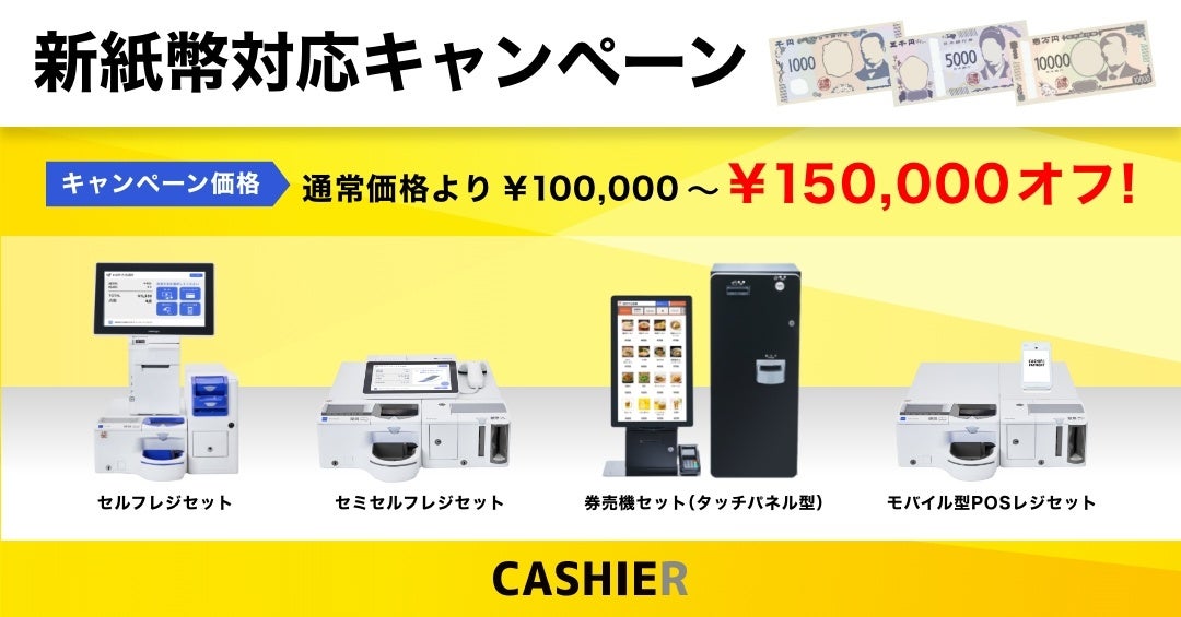 【新紙幣対応の自動釣銭機】2024年7月からスタートする"新紙幣"に対応したセルフレジやタッチパネル型券売機のキャンペーンを開催!