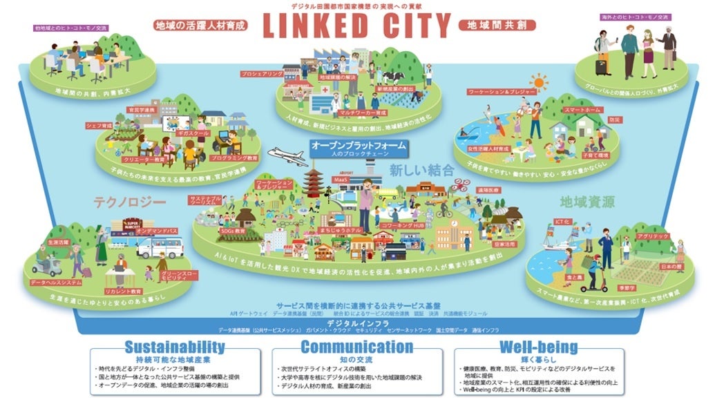 LINKED CITYは、DXの力で地域を輝かせるための企業集団で、88社の企業、5つの協会団体が連携・共創しています。地域の企業・学生・ママ、みなさんの地域課題解決や新産業創出を支援することで、持続可能で幸せなまちづくりを目指します。