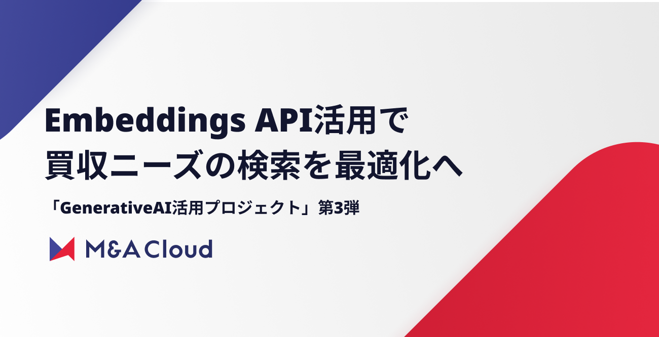 M&Aクラウド、Embeddings API活用でM&Aニーズの検索を最適化へ