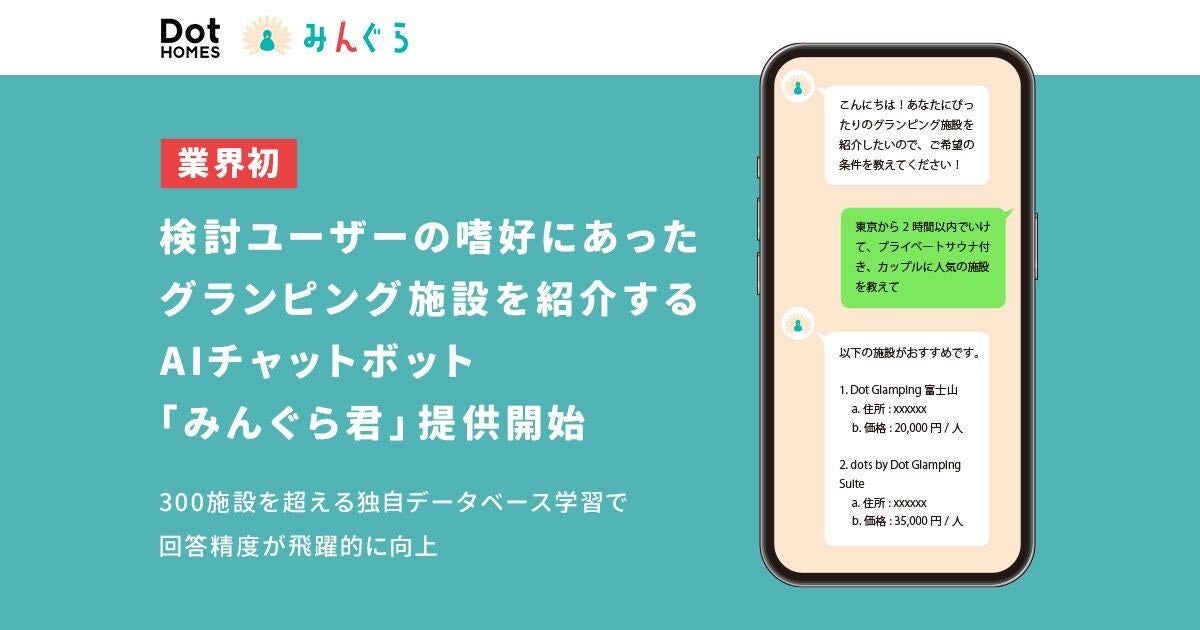 【業界初】検討ユーザーの嗜好にあったグランピング施設を提案するAIチャットボット「みんぐら君」β版を提供開始!
