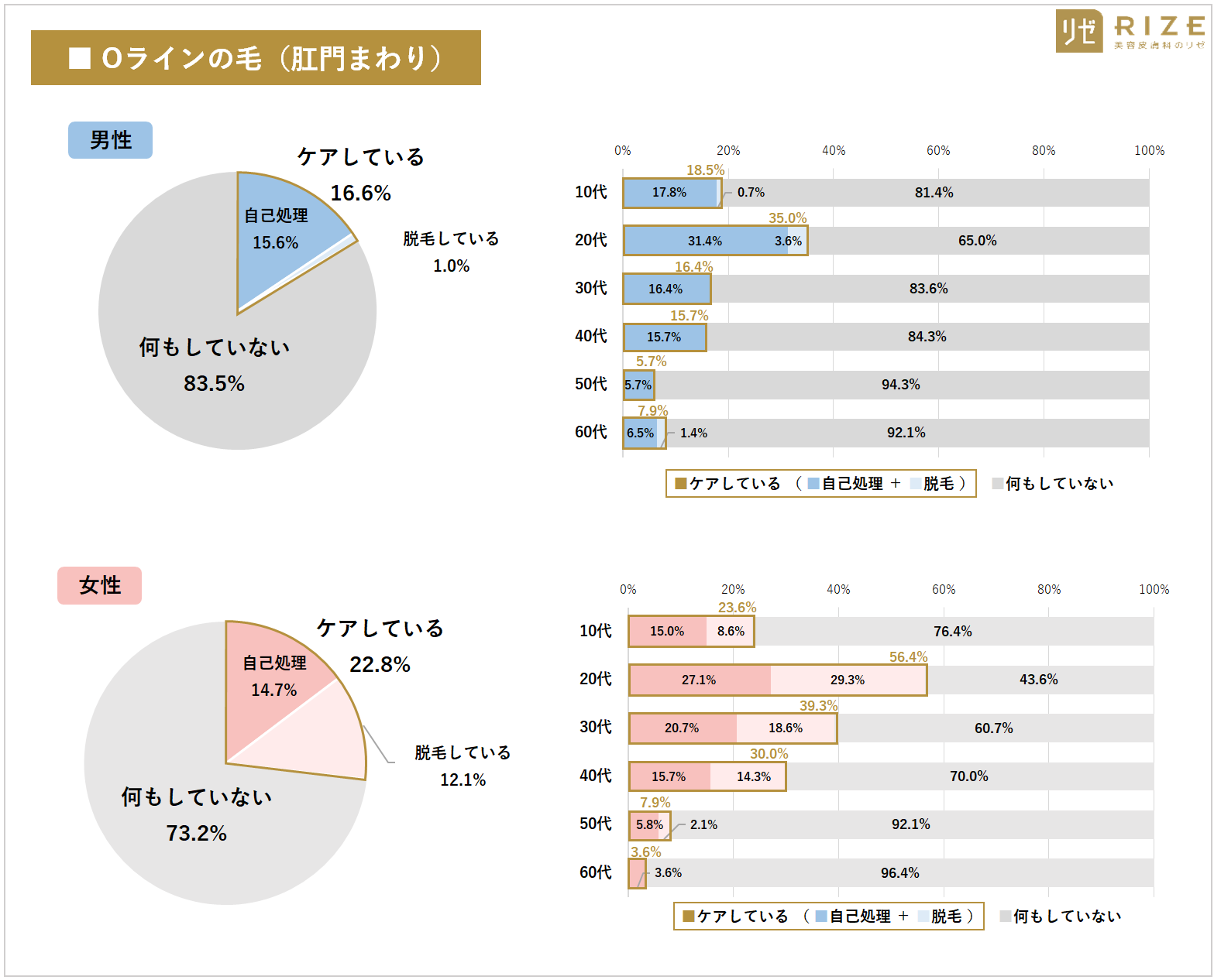 - ④【Oライン(肛門周囲)の毛】「清潔感・ムレ等の衛生面」理由に全世代でツルツル希望者増