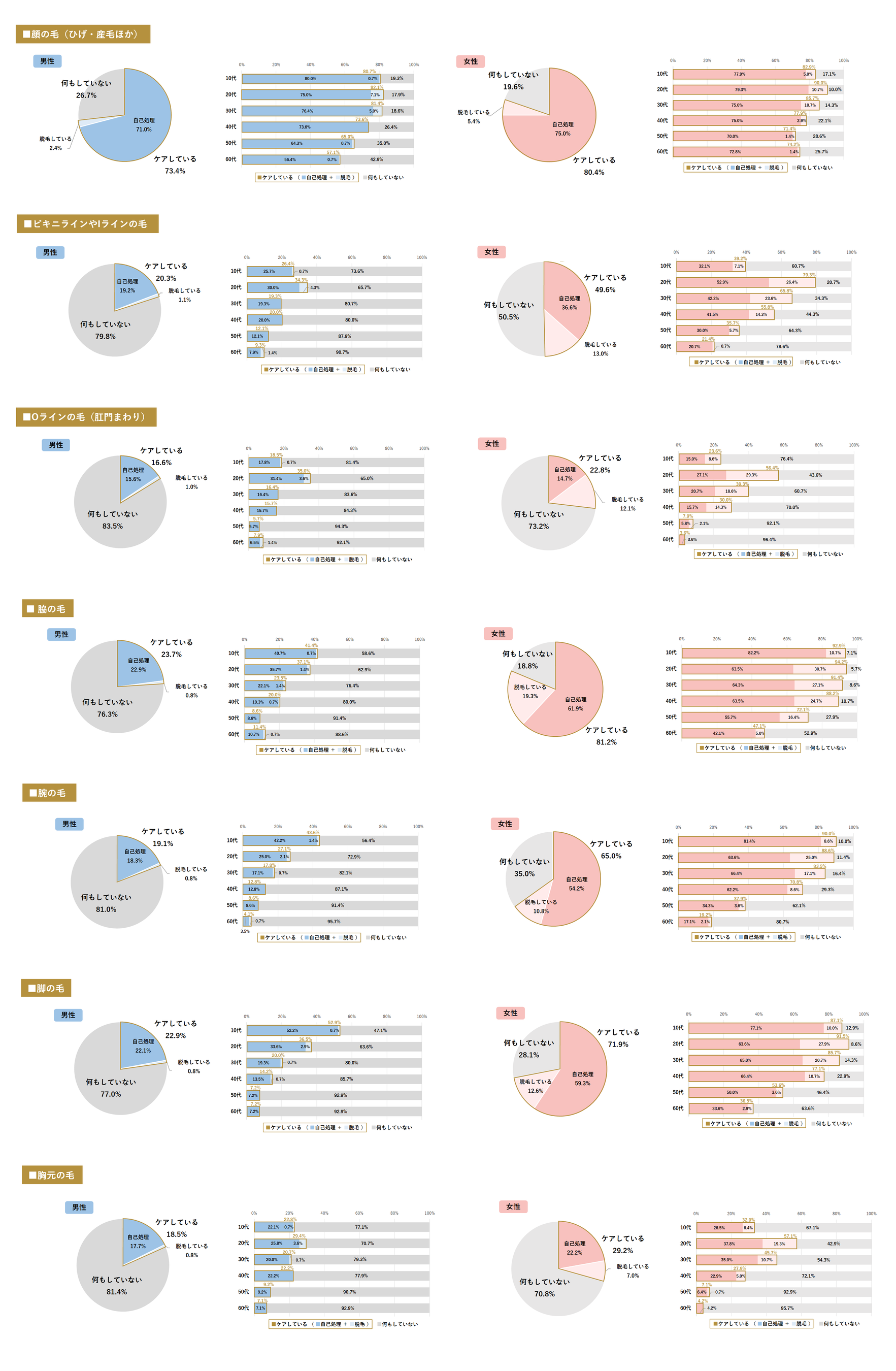 主な理由: ✓ケアの方法が分からない ✓面倒臭い ✓毛があっても問題ない ✓必要性を感じない