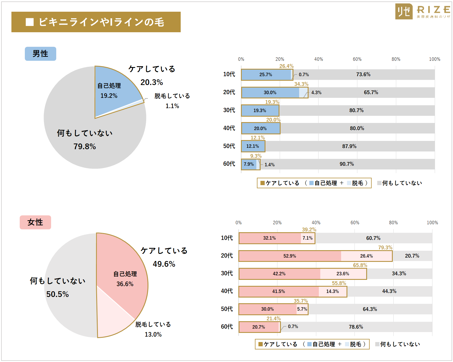 ③【Vライン・Iラインの毛】男性5人に1人、女性2人に1人が「ケアしている」