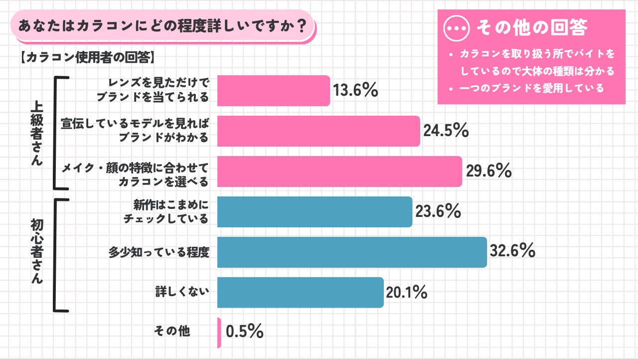 「その他」を選んだ方の回答では、「カラコンを取り扱う所でバイトをしているので大体の種類は分かる」というユニークな意見も。アルバイトでカラコンについての知識を身に着ける高校生もいるようです。