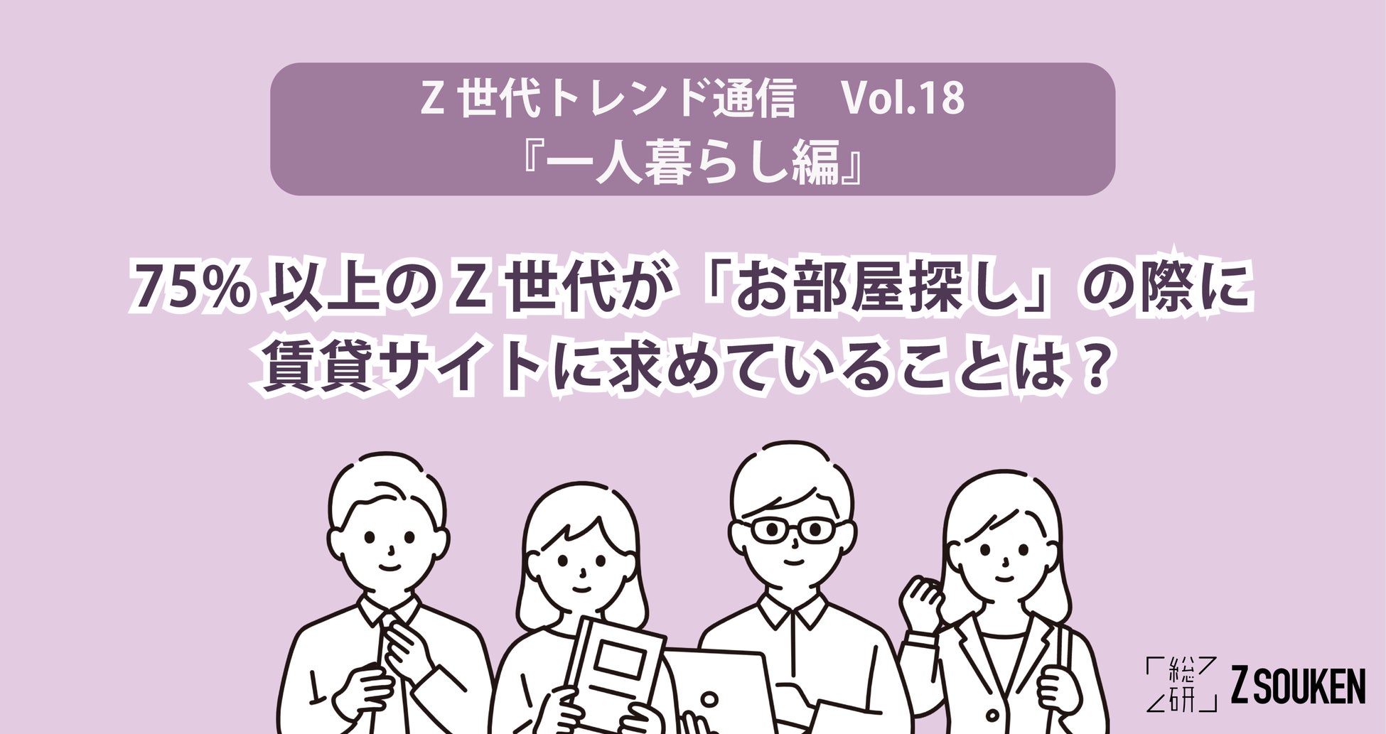 75%以上のZ世代が「お部屋探し」の際に賃貸サイトに求めていることは?〜Z総研トレンド通信Vol.18『一人暮らし編』〜