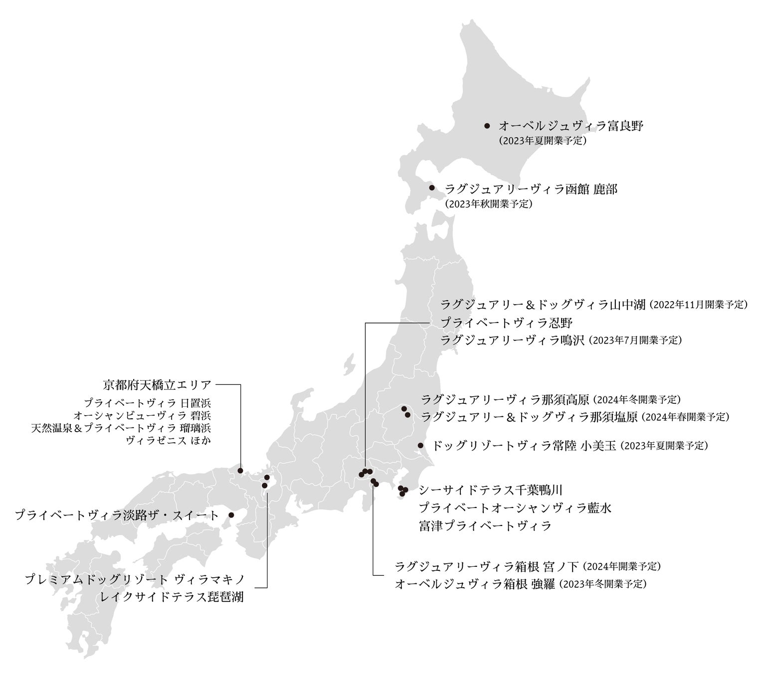 | その他 | 2024年末には200棟超のラグジュアリーヴィラを供給 2022年11月現在、関東近郊、淡路島、北海道における開発、用地取得に注力 |
