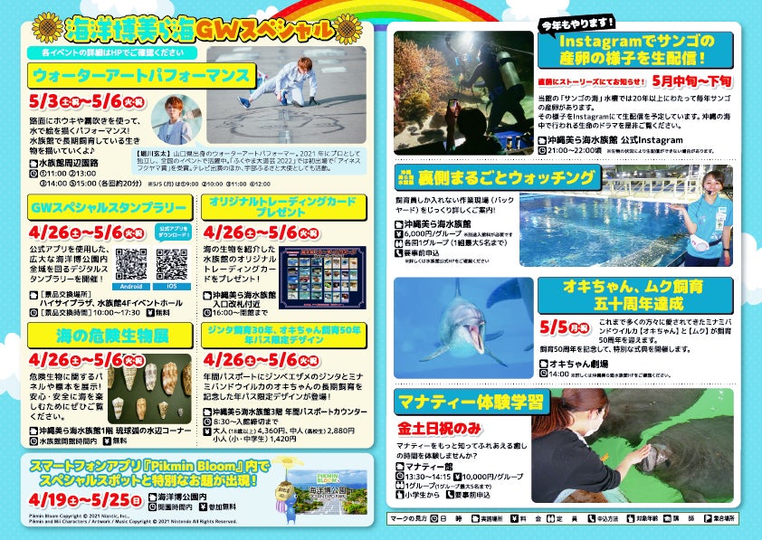 また、海洋博公園では、施設の魅力やイベント情報を掲載した最新号 「美ら海通信5月号」 を発行しました。本号では、GW期間中に開催される各種イベントの詳細もご紹介しています。