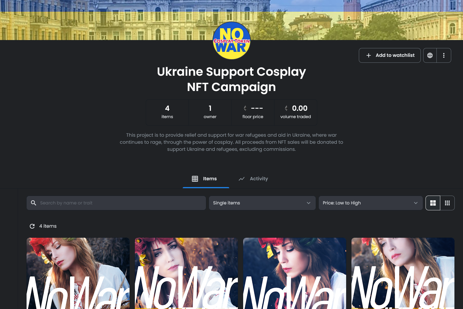 ・販売ページ:https://opensea.io/collection/ukraine-support-cosplaynft